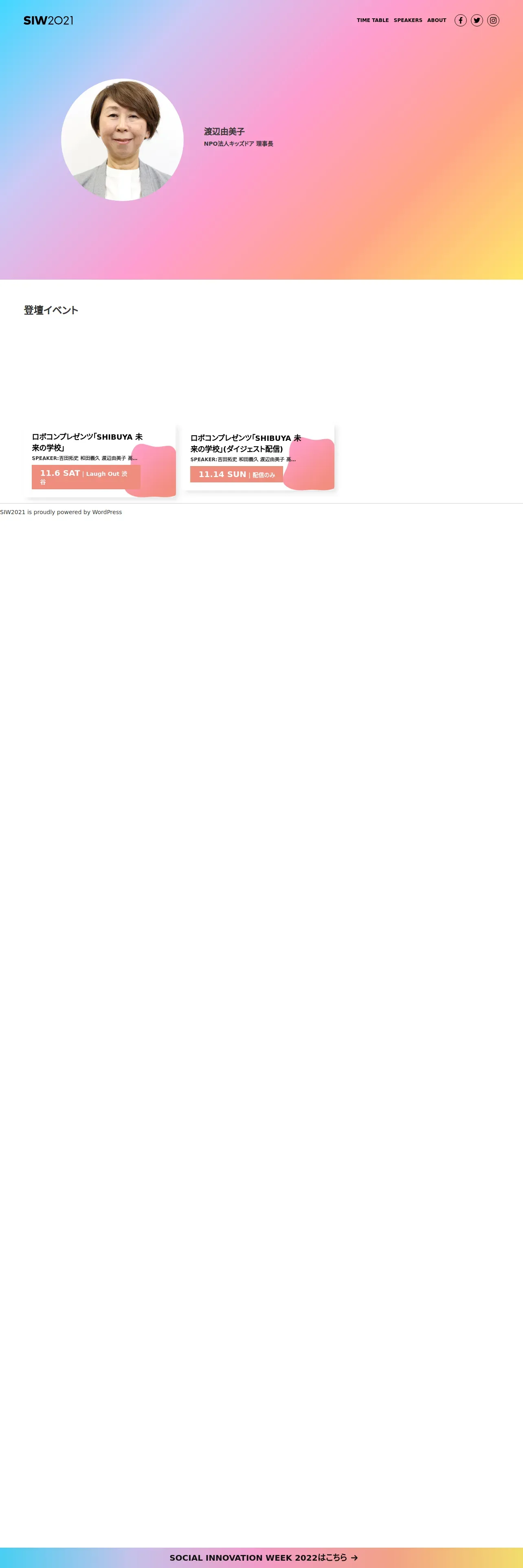 https://social-innovation-week-shibuya.jp:443/2021/speakerlist/%e6%b8%a1%e8%be%ba%e7%94%b1%e7%be%8e%e5%ad%90/