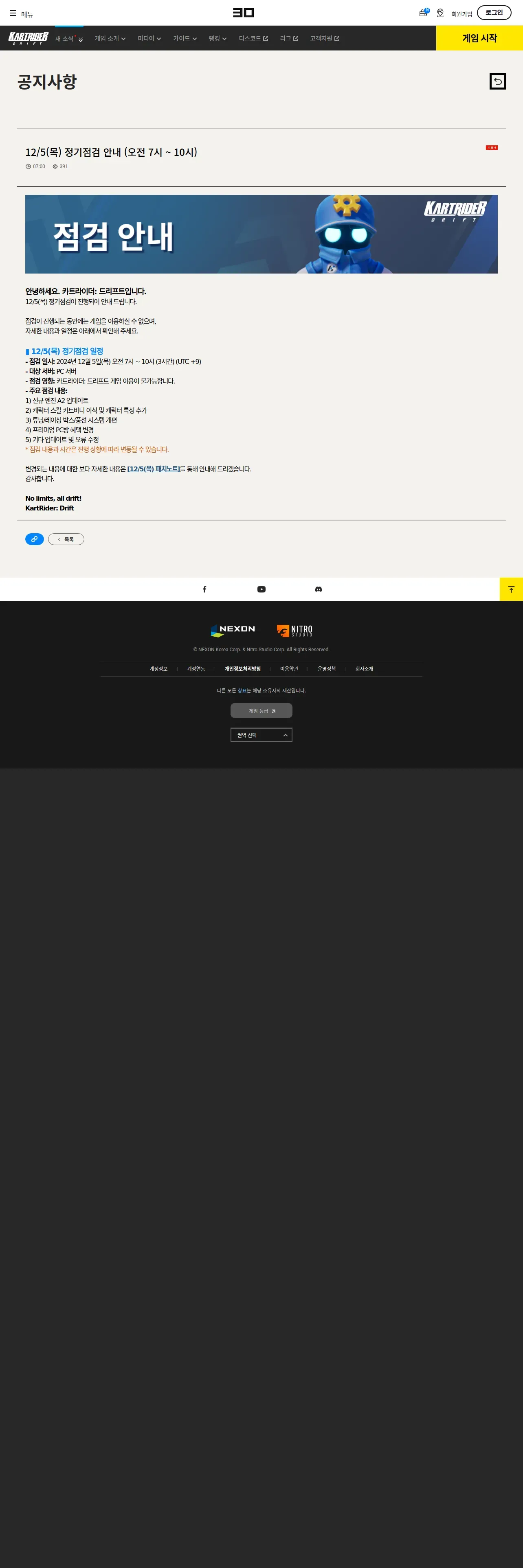 https://kartdrift.nexon.com:443/kartdrift/ko/news/announcement/view?threadId=2693468