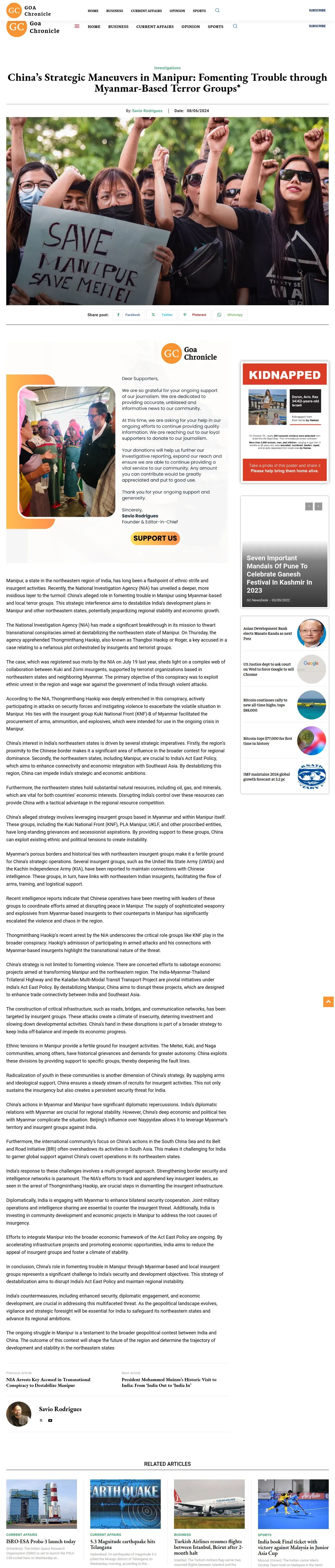 https://goachronicle.com:443/chinas-strategic-maneuvers-in-manipur-fomenting-trouble-through-myanmar-based-terror-groups/