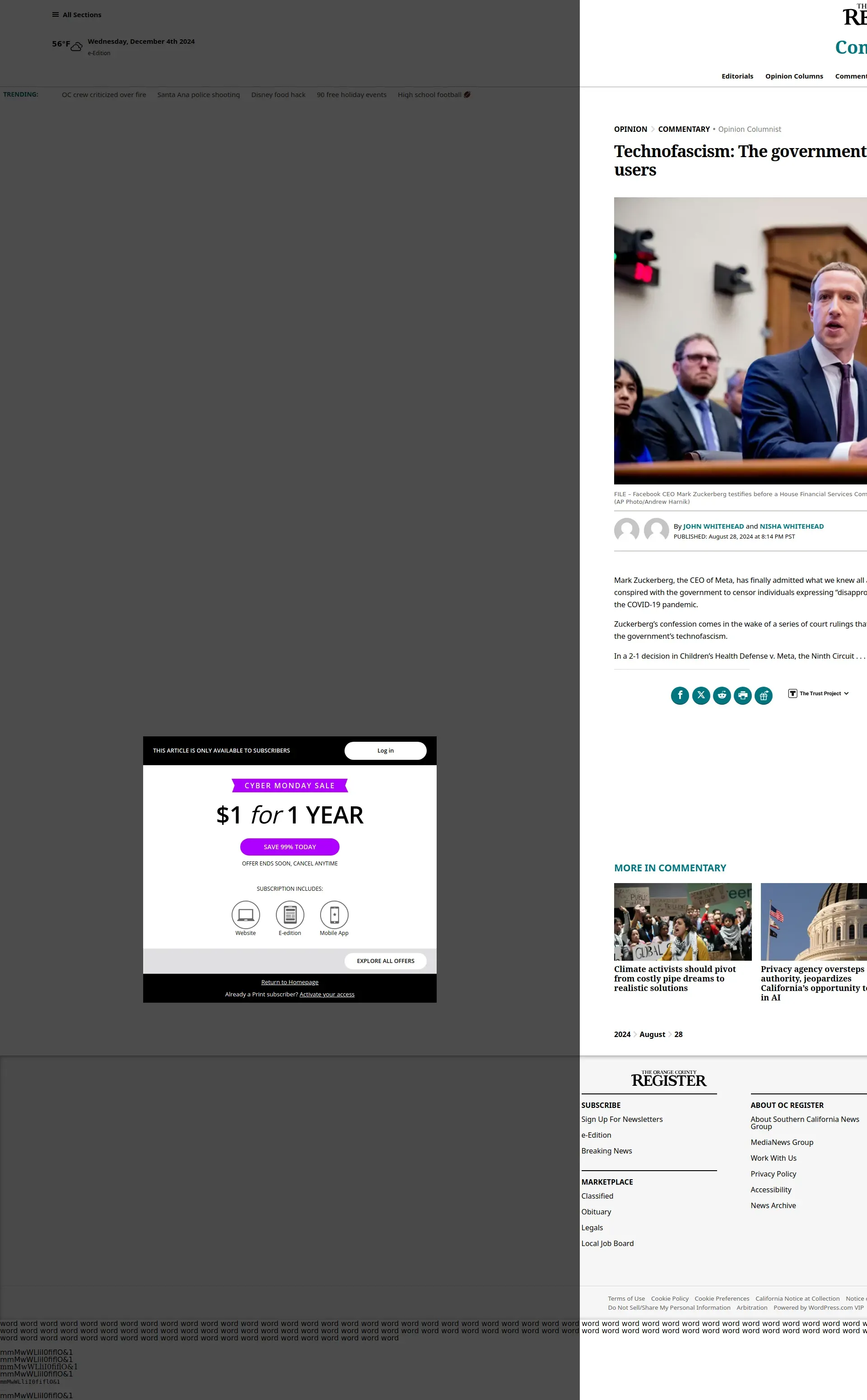 取得元URL: https://www.ocregister.com:443/2024/08/28/technofascism-the-government-pressured-tech-companies-to-censor-users/
