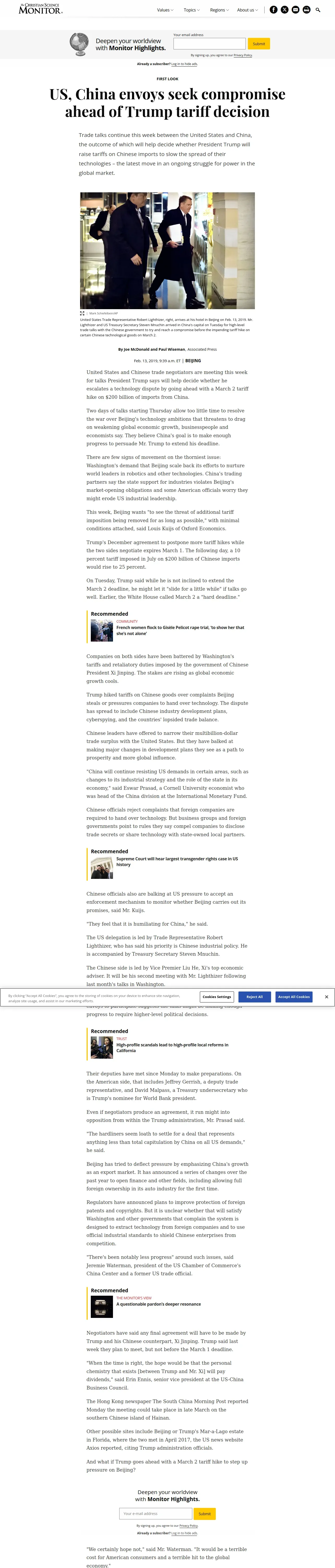 https://www.csmonitor.com:443/USA/Politics/2019/0213/US-China-envoys-seek-compromise-ahead-of-Trump-tariff-decision