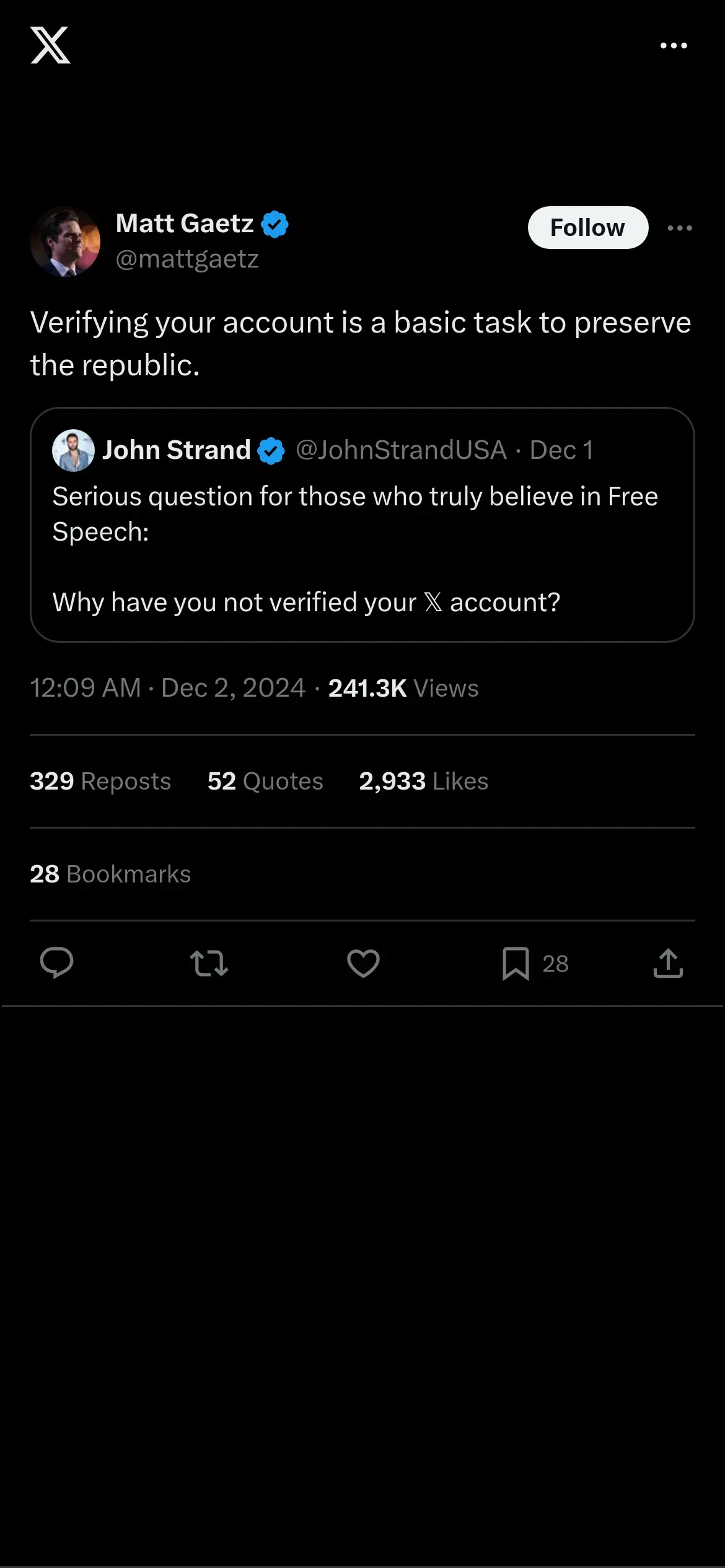 https://x.com:443/mattgaetz/status/1863239080047243570