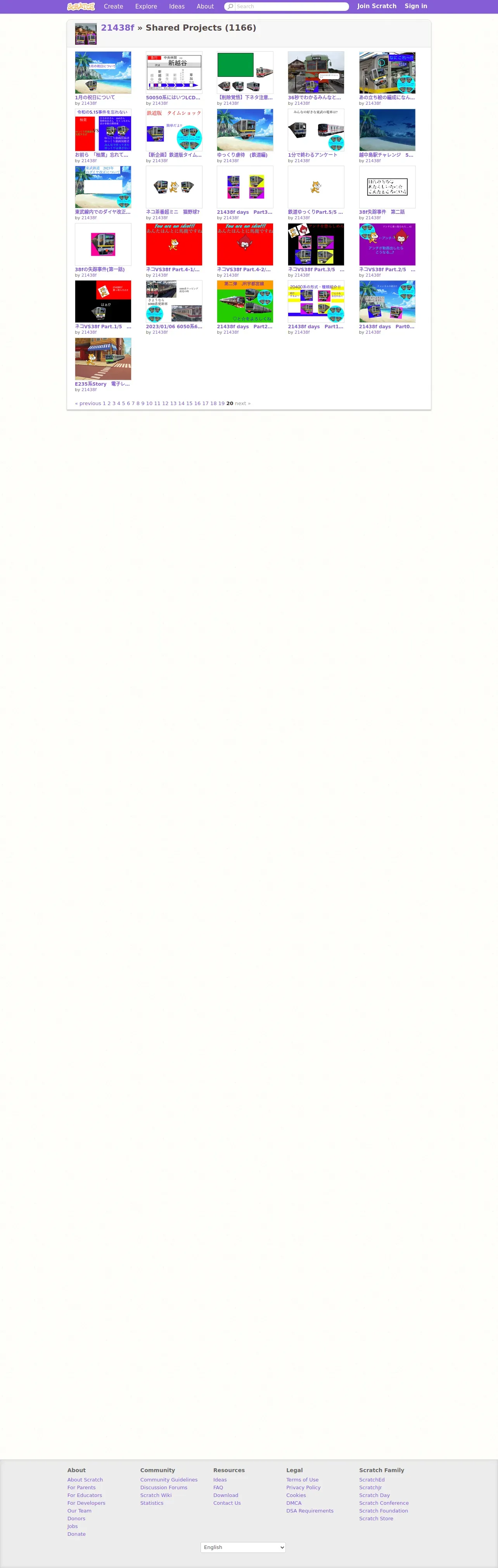 取得元URL: https://scratch.mit.edu:443/users/21438f/projects/?page=20