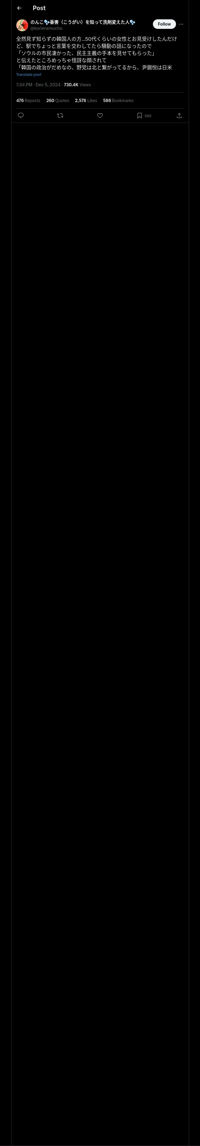 取得元URL: https://x.com:443/korieramucho/status/1864619438961775074