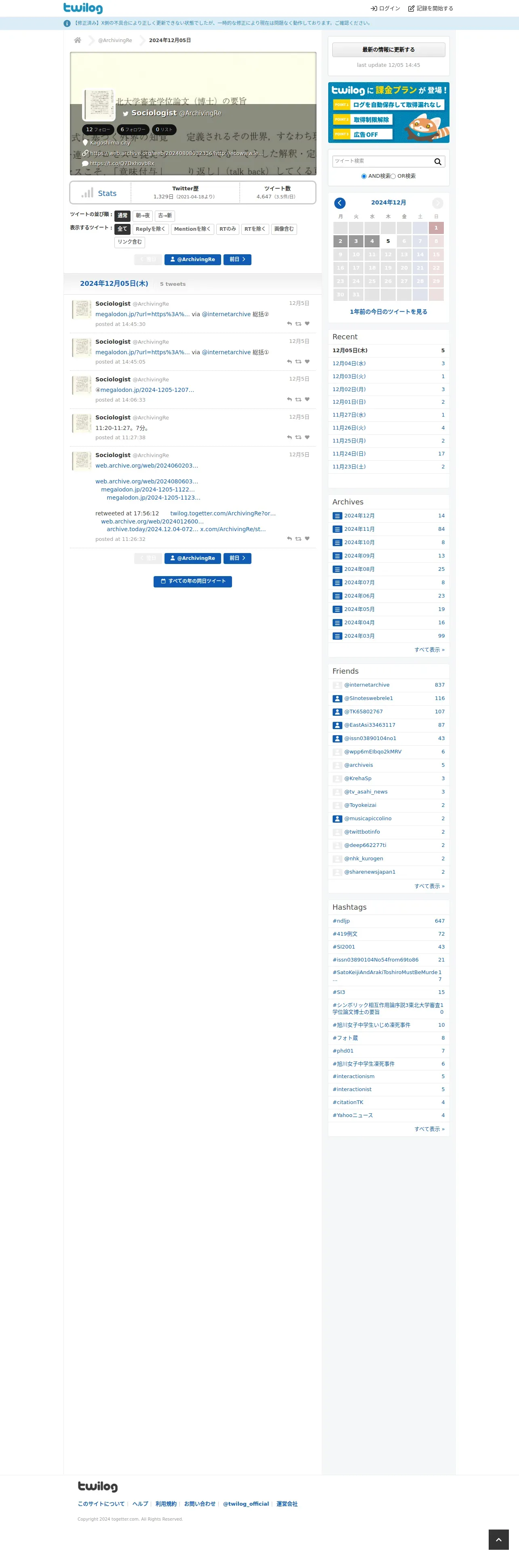 https://twilog.togetter.com:443/ArchivingRe/date-241205