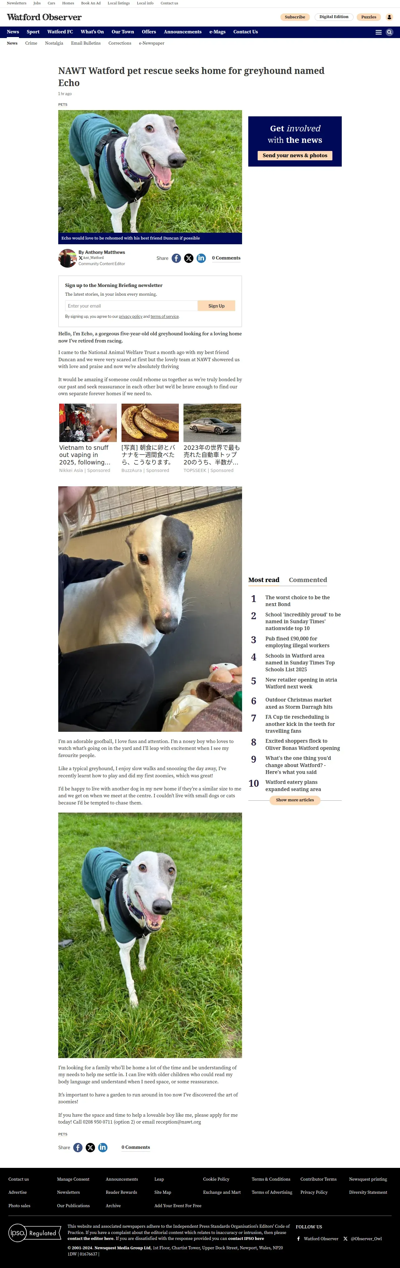 取得元URL: https://www.watfordobserver.co.uk:443/news/24771836.nawt-watford-pet-rescue-seeks-home-greyhound-named-echo/