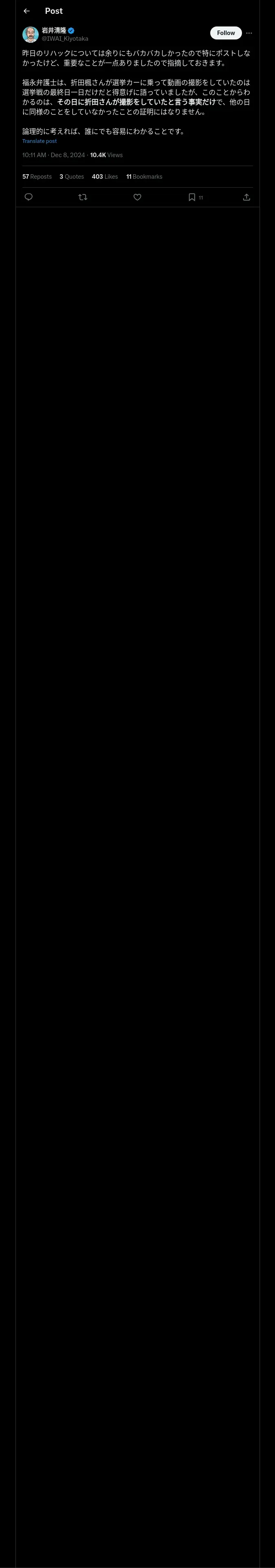 取得元URL: https://x.com:443/IWAI_Kiyotaka/status/1865564872098156952