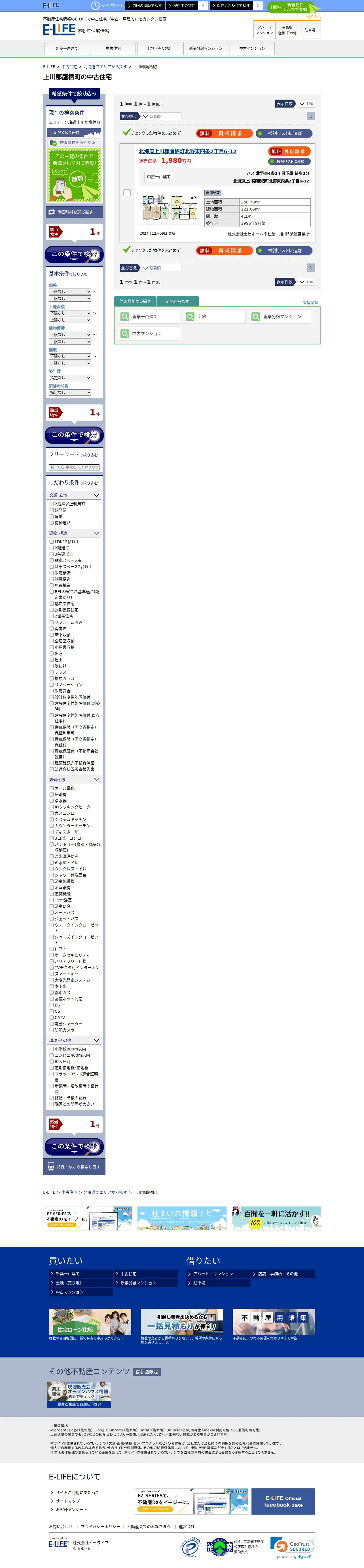https://www.e-life.jp:443/sales/kodate_u/area/hokkaido/kamikawaguntakasucho/1/