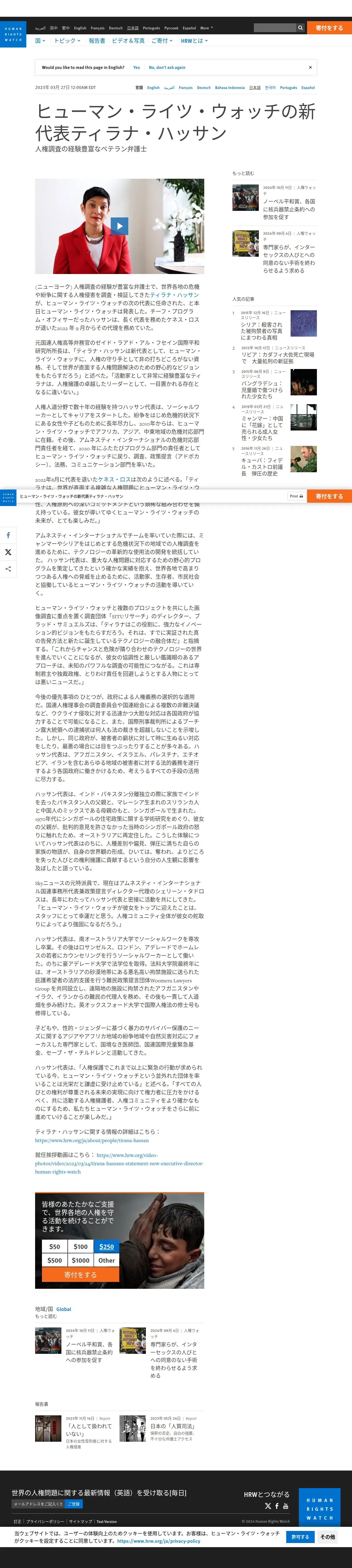 https://www.hrw.org:443/ja/news/2023/03/27/tirana-hassan-lead-human-rights-watch