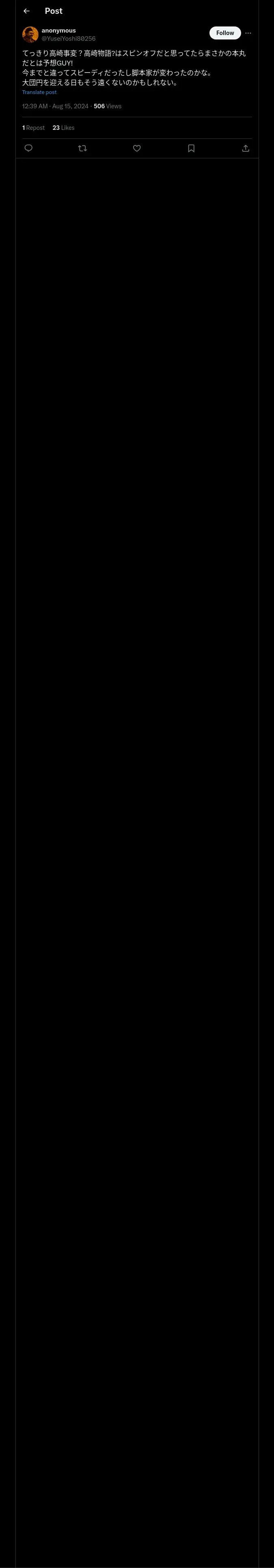 https://x.com:443/YuseiYoshi80256/status/1823746322375360880
