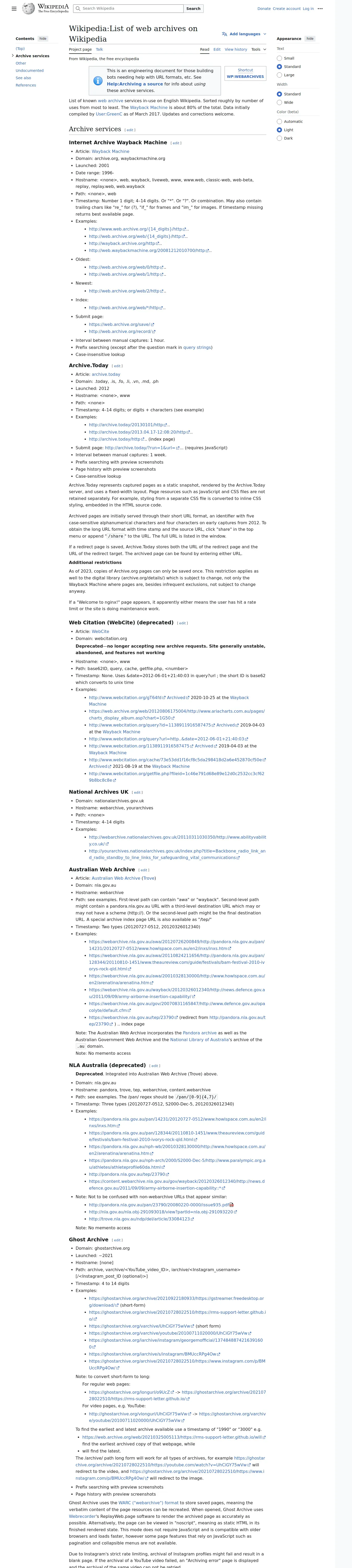 取得元URL: https://en.wikipedia.org:443/wiki/Wikipedia:List_of_web_archives_on_Wikipedia