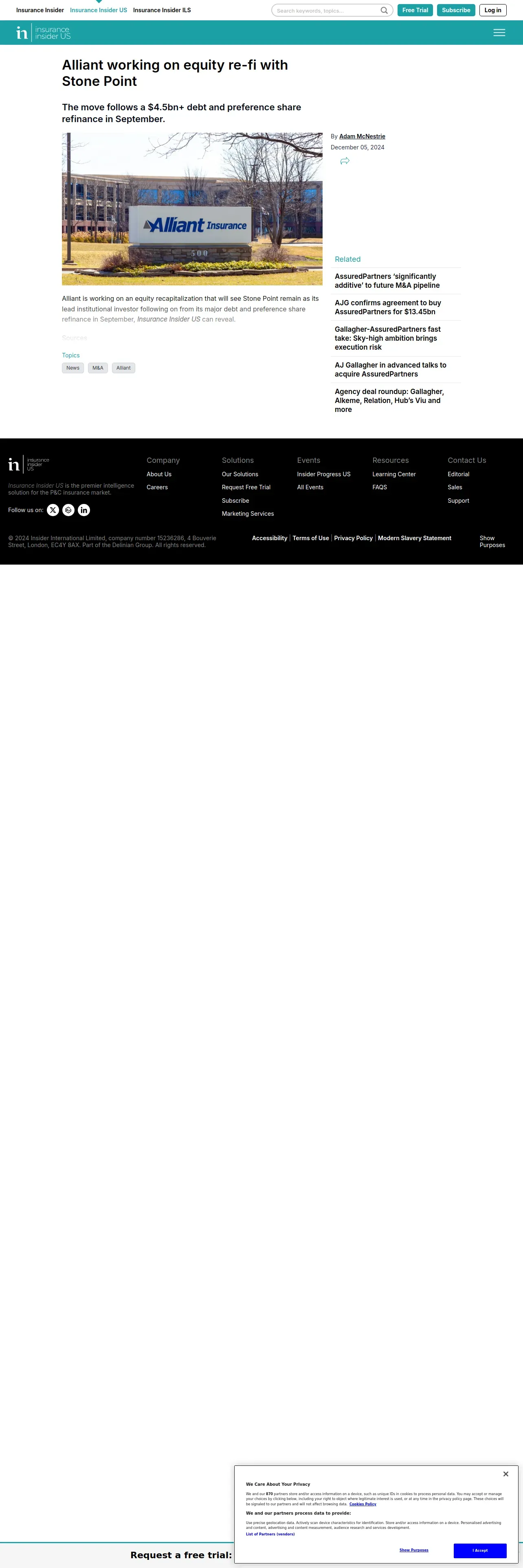 https://www.insuranceinsiderus.com:443/article/2e44lpp99xsqxfm5jxbls/all-segments/brokers/alliant-working-on-equity-re-fi-with-stone-point