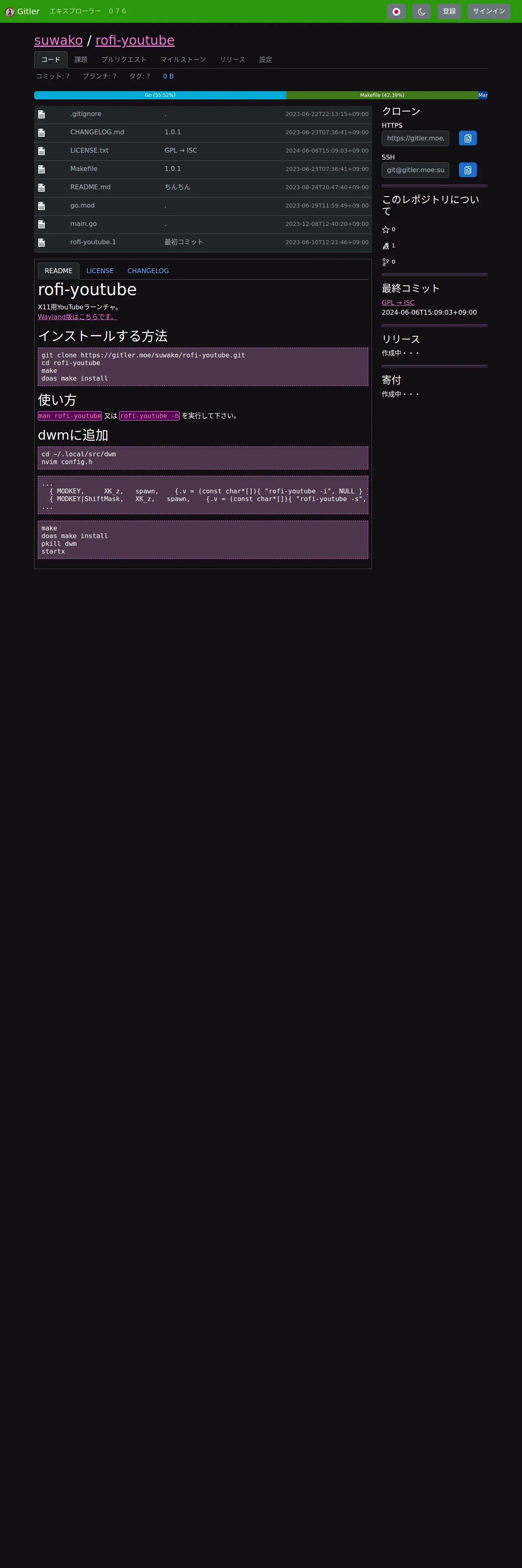 取得元URL: https://gitler.moe:443/suwako/rofi-youtube