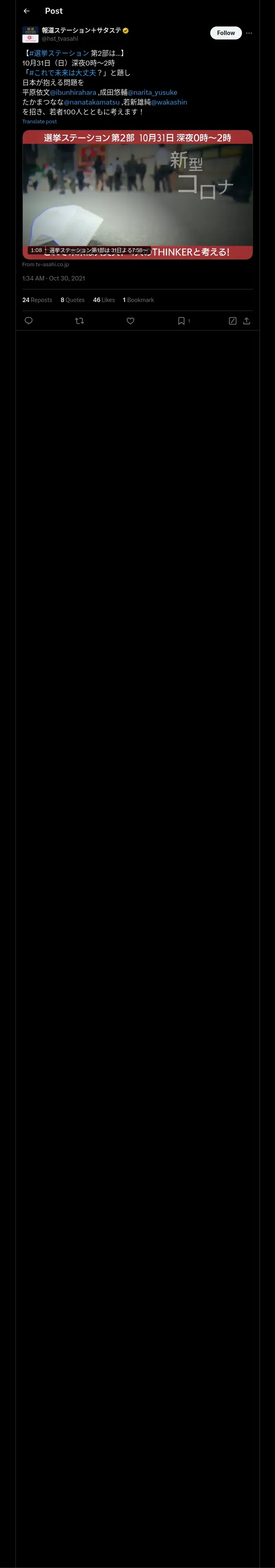 https://x.com:443/hst_tvasahi/status/1454124492406820864