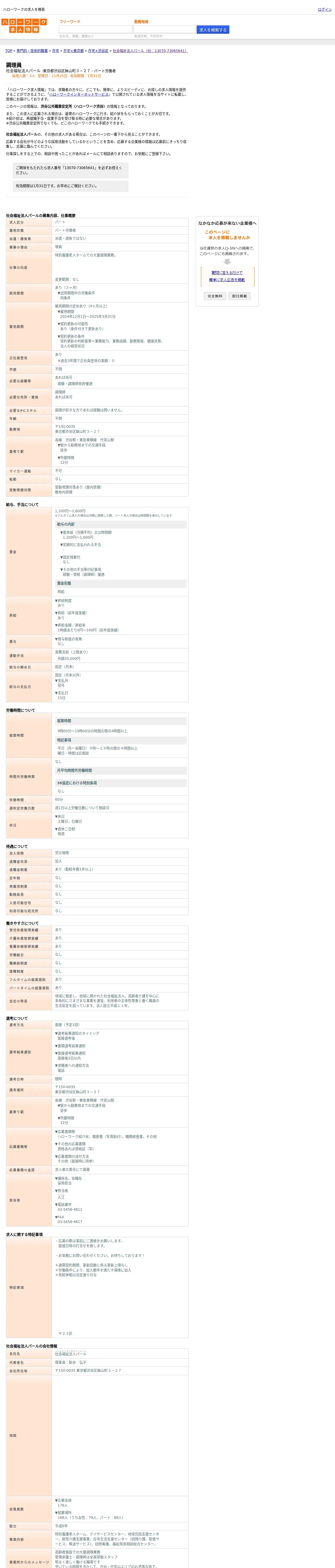 https://www.hellowork.careers:443/%E7%A4%BE%E4%BC%9A%E7%A6%8F%E7%A5%89%E6%B3%95%E4%BA%BA%E3%83%91%E3%83%BC%E3%83%AB%E3%81%A7%E3%81%AE%E8%AA%BF%E7%90%86%E5%93%A1%E3%81%AE%E3%83%8F%E3%83%AD%E3%83%BC%E3%83%AF%E3%83%BC%E3%82%AF%E6%B1%82%E4%BA%BA%E6%83%85%E5%A0%B1%EF%BC%88%E6%9D%B1%E4%BA%AC%E9%83%BD%E6%B8%8B%E8%B0%B7%E5%8C%BA%EF%BC%89-%2013070-73065641/