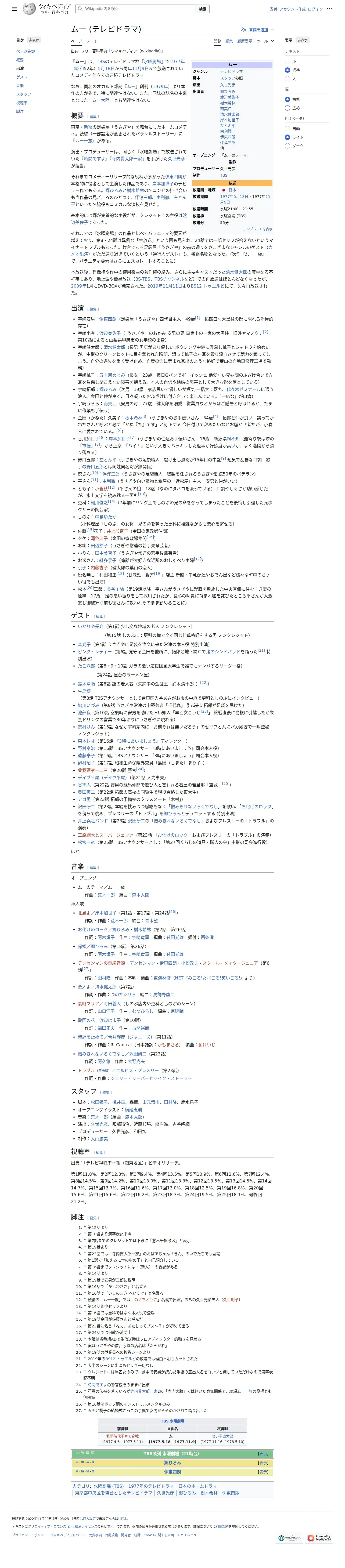 https://ja.wikipedia.org:443/wiki/%E3%83%A0%E3%83%BC_(%E3%83%86%E3%83%AC%E3%83%93%E3%83%89%E3%83%A9%E3%83%9E)