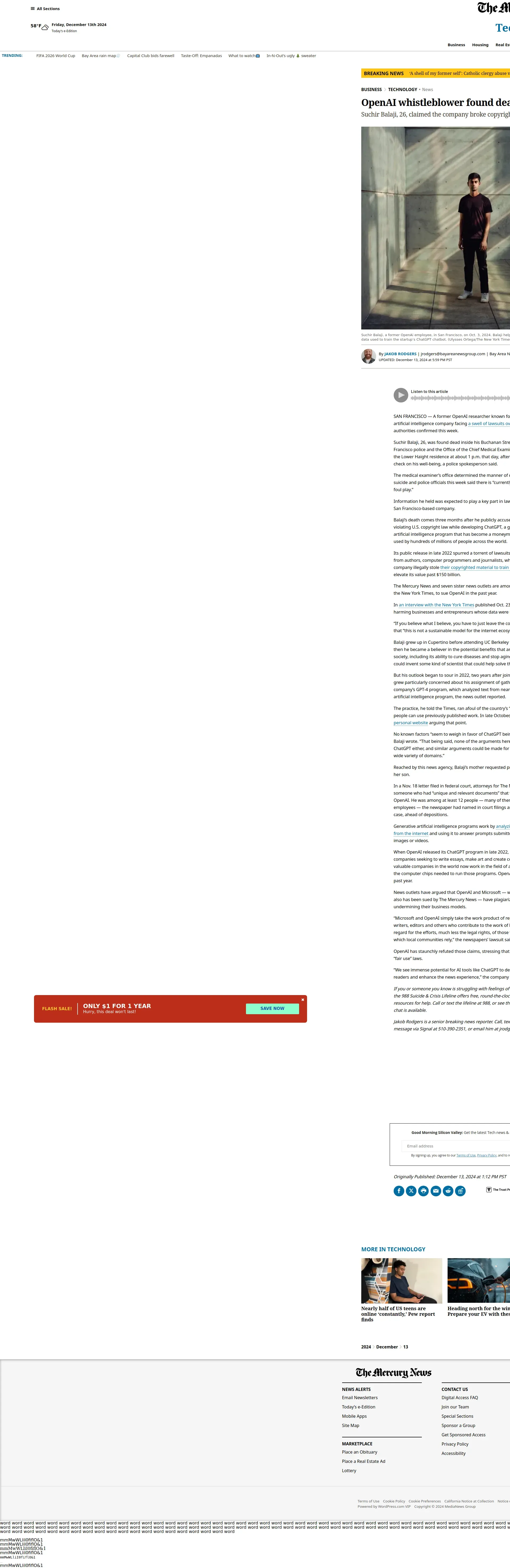 https://www.mercurynews.com:443/2024/12/13/openai-whistleblower-found-dead-in-san-francisco-apartment/