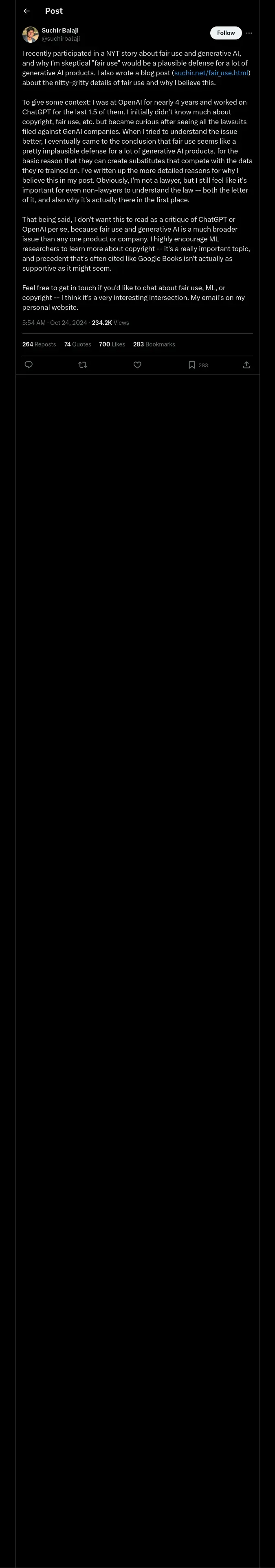 https://x.com:443/suchirbalaji/status/1849192575758139733