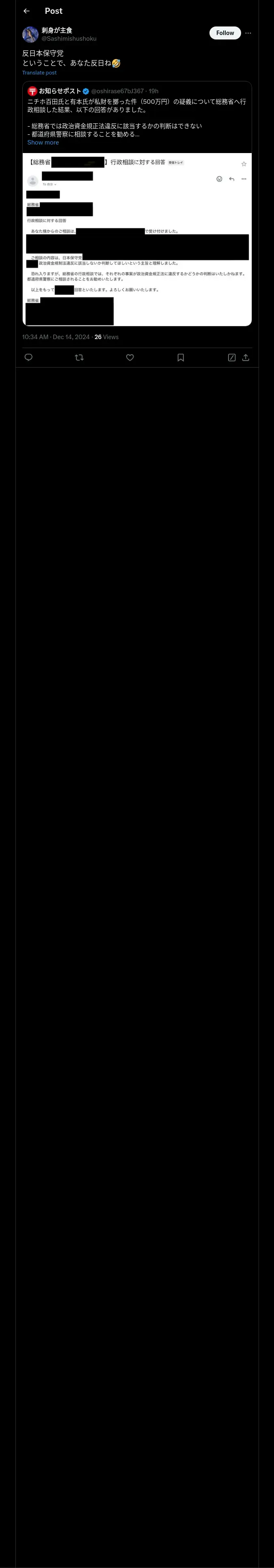 https://x.com:443/Sashimishushoku/status/1867745055496450110?t=dSRQxMQ70mgaZeGz0uyeHQ&s=19