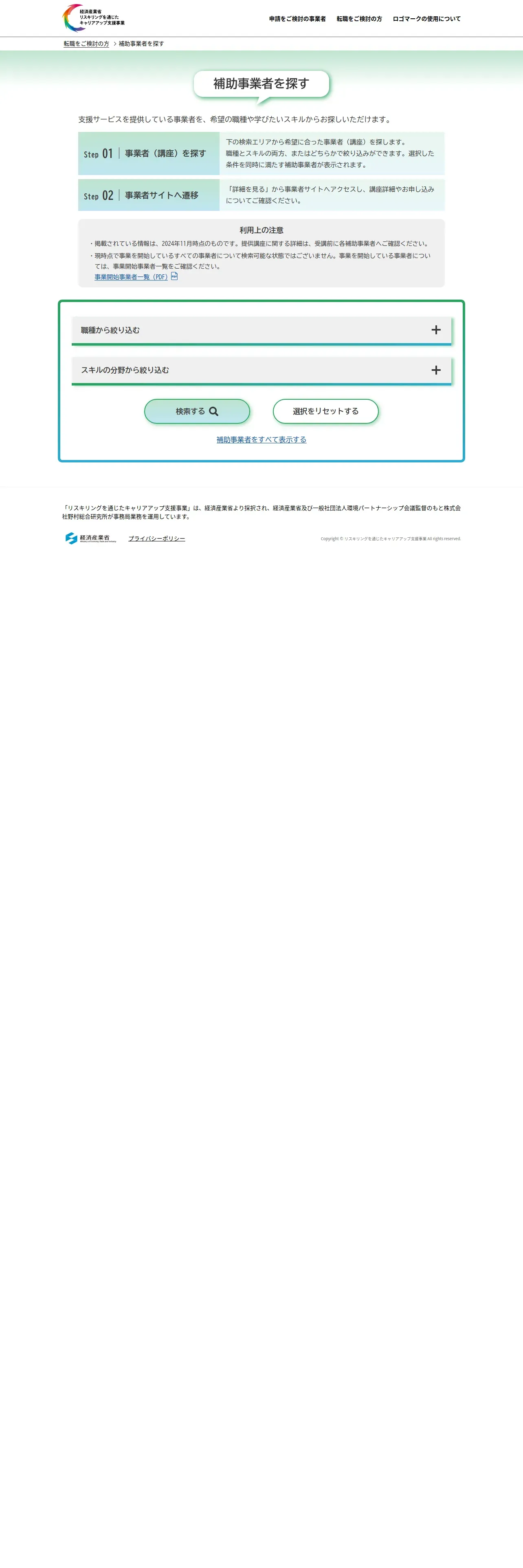 https://careerup.reskilling.go.jp:443/worker/search/