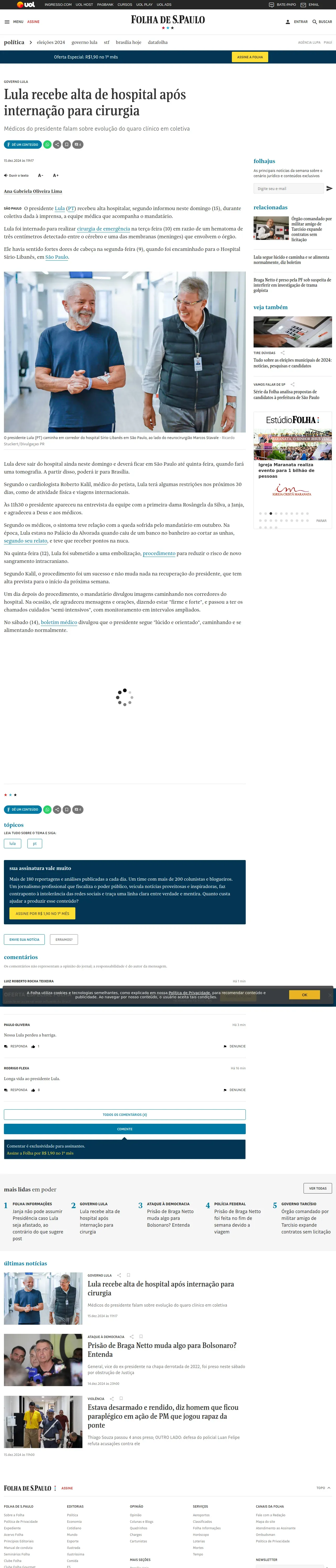 https://www1.folha.uol.com.br:443/poder/2024/12/lula-recebe-alta-hospitalar.shtml