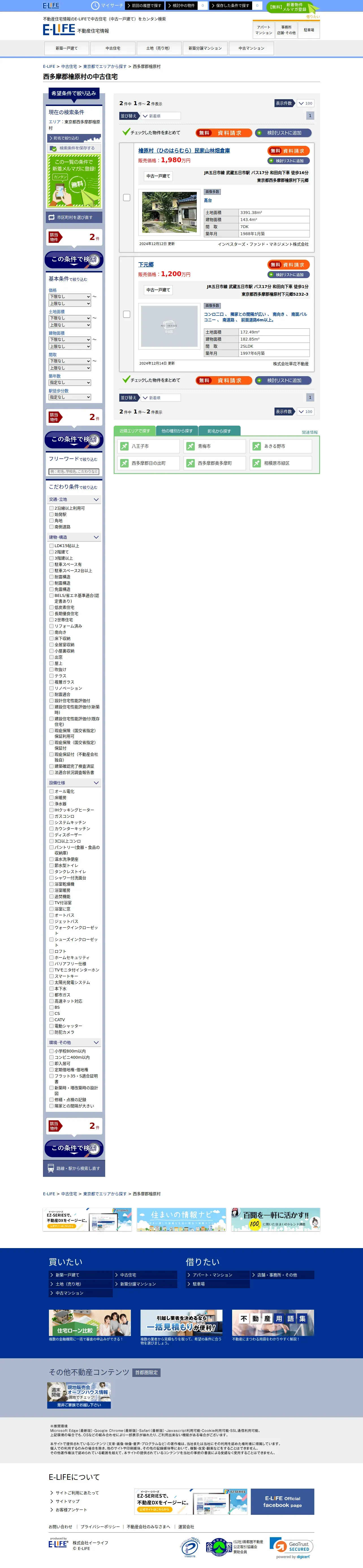 https://www.e-life.jp:443/sales/kodate_u/area/tokyo/nishitamagunhinoharamura/1/