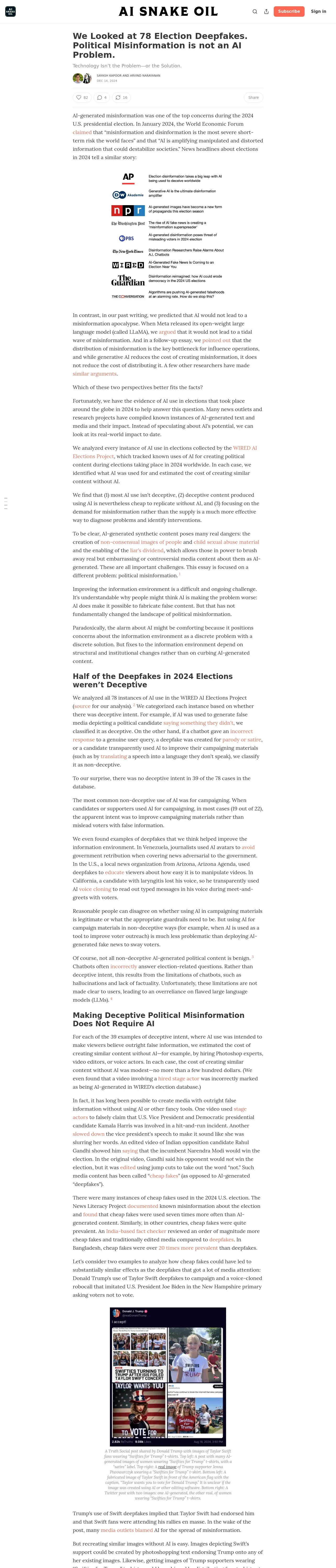 https://www.aisnakeoil.com:443/p/we-looked-at-78-election-deepfakes