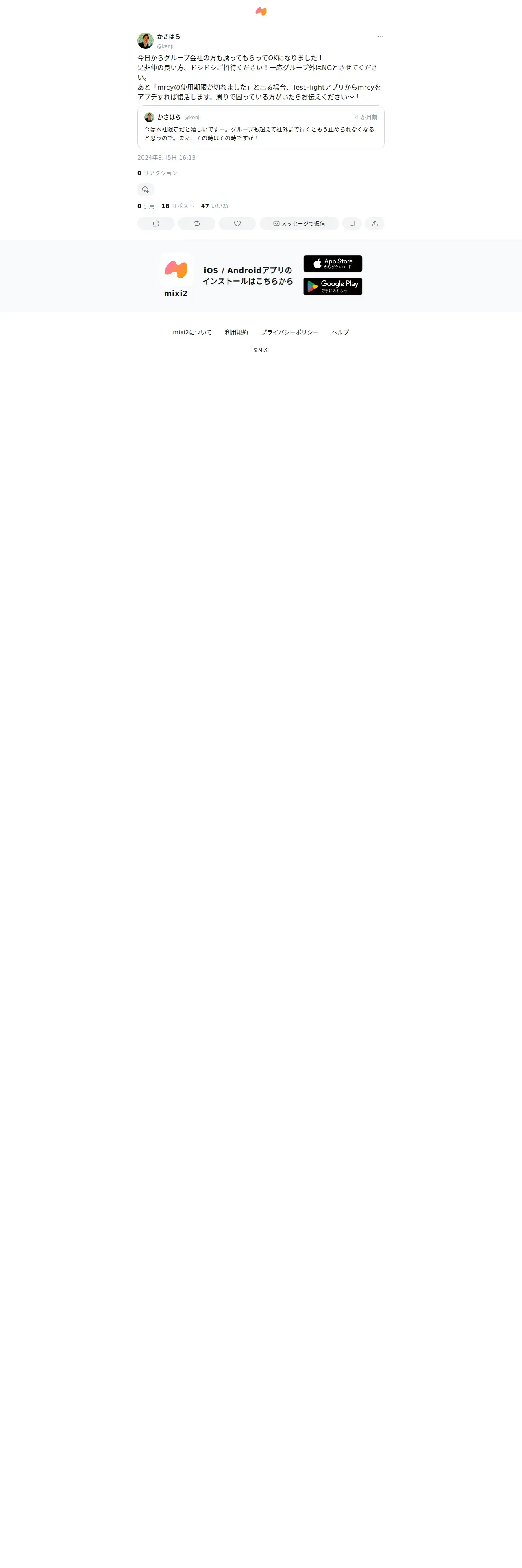 https://mixi.social:443/@kenji/posts/6a7267f2-ad53-46c3-ae5c-2029aaad845e