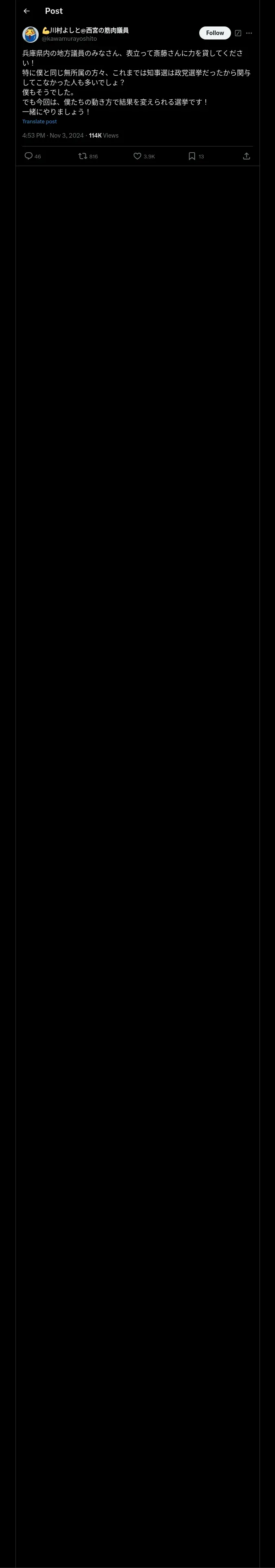 https://x.com:443/kawamurayoshito/status/1852982294510010548