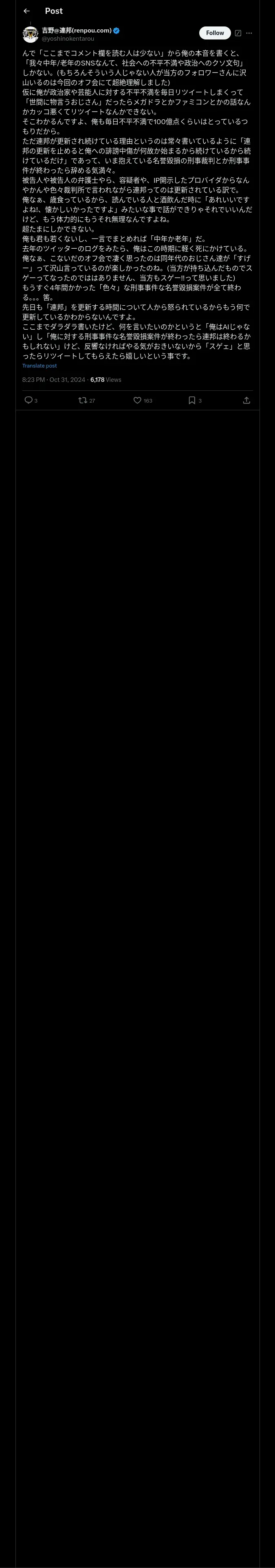 https://x.com:443/yoshinokentarou/status/1851948117765345327