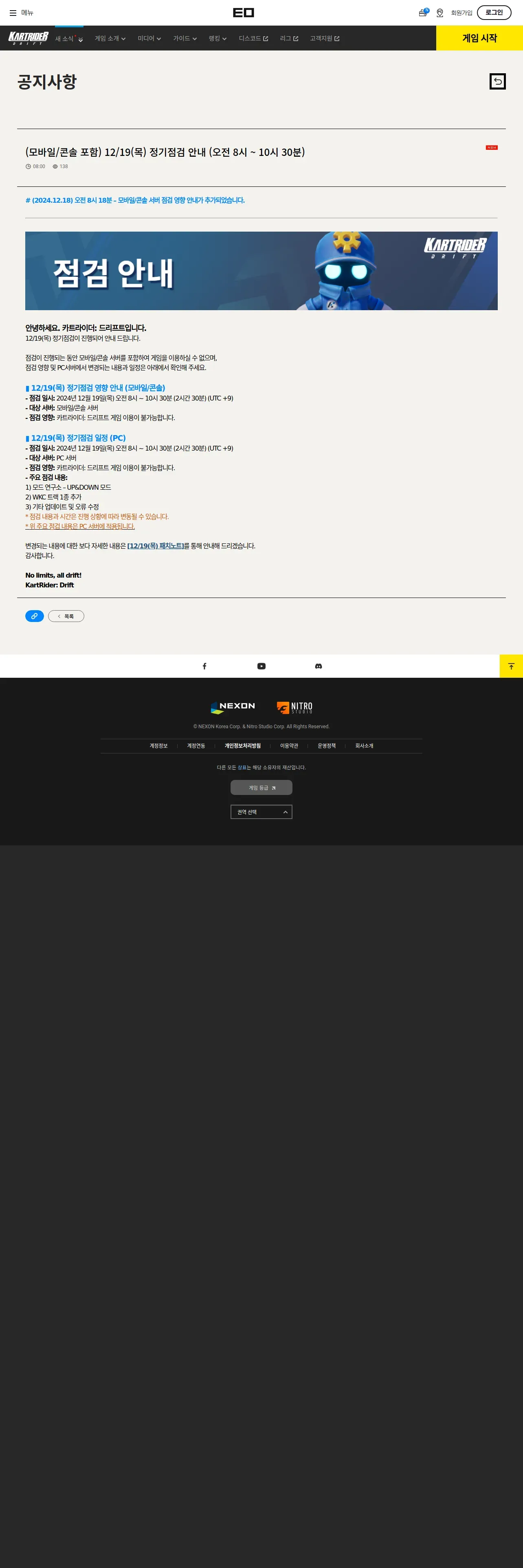 https://kartdrift.nexon.com:443/kartdrift/ko/news/announcement/view?threadId=2701222