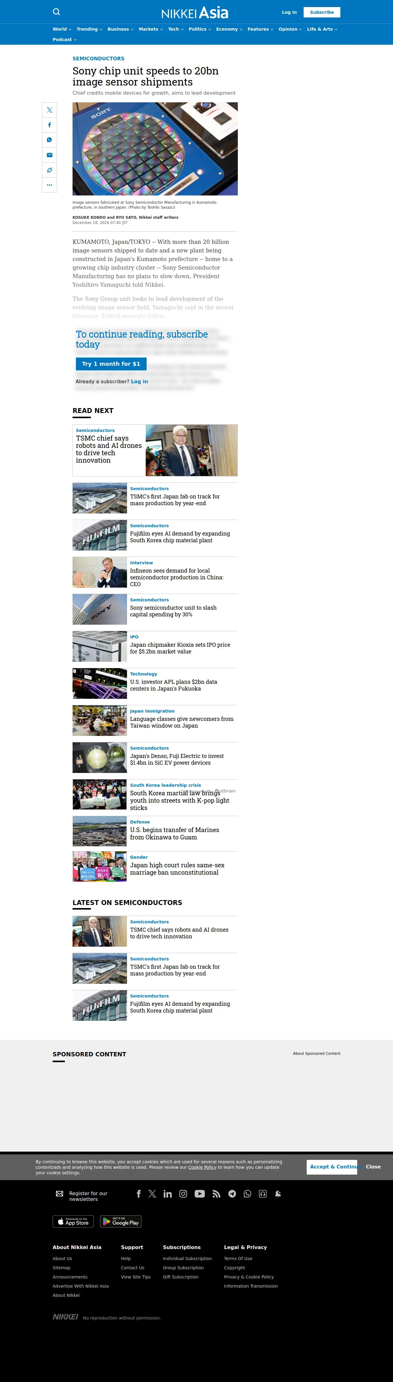 https://asia.nikkei.com:443/Business/Tech/Semiconductors/Sony-chip-unit-speeds-to-20bn-image-sensor-shipments