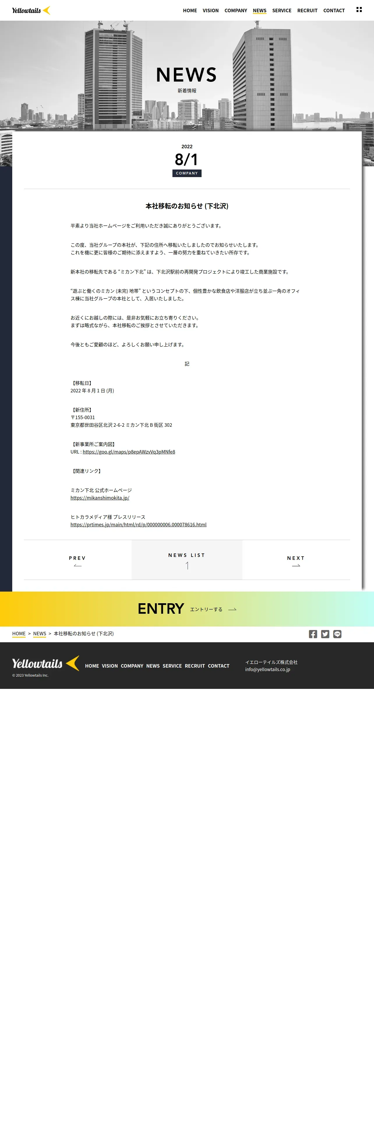 https://yellowtails.co.jp:443/head-office-relocation-2022/