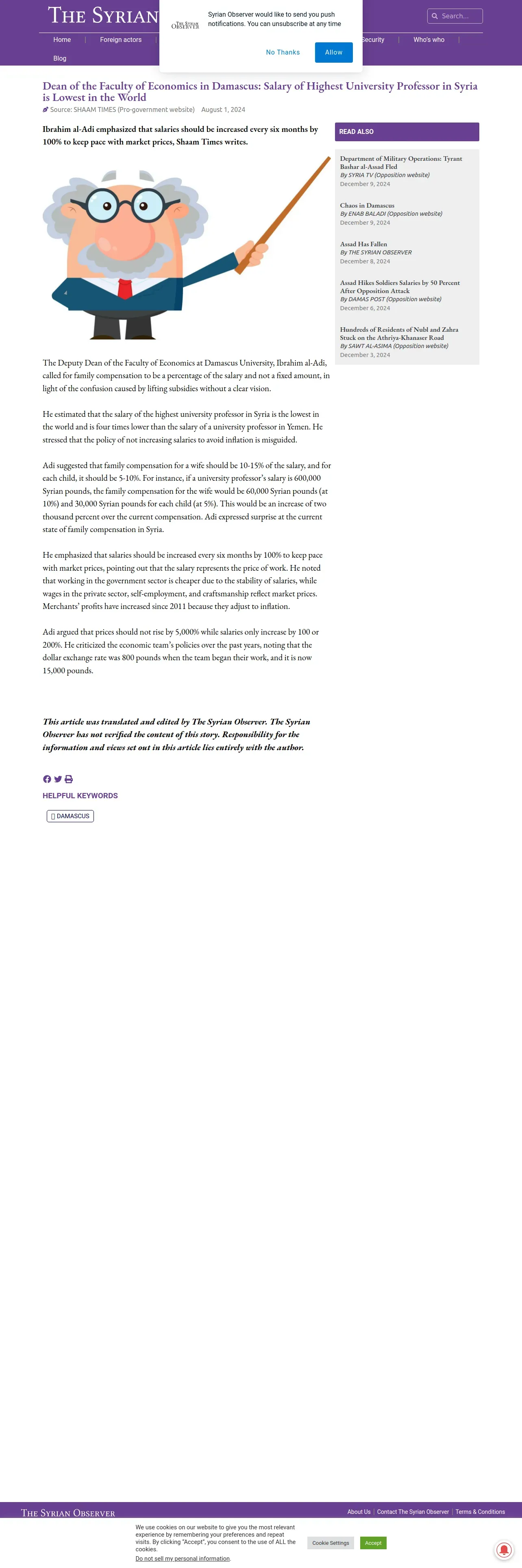 https://syrianobserver.com:443/society/dean-of-the-faculty-of-economics-in-damascus-salary-of-highest-university-professor-in-syria-is-lowest-in-the-world.html