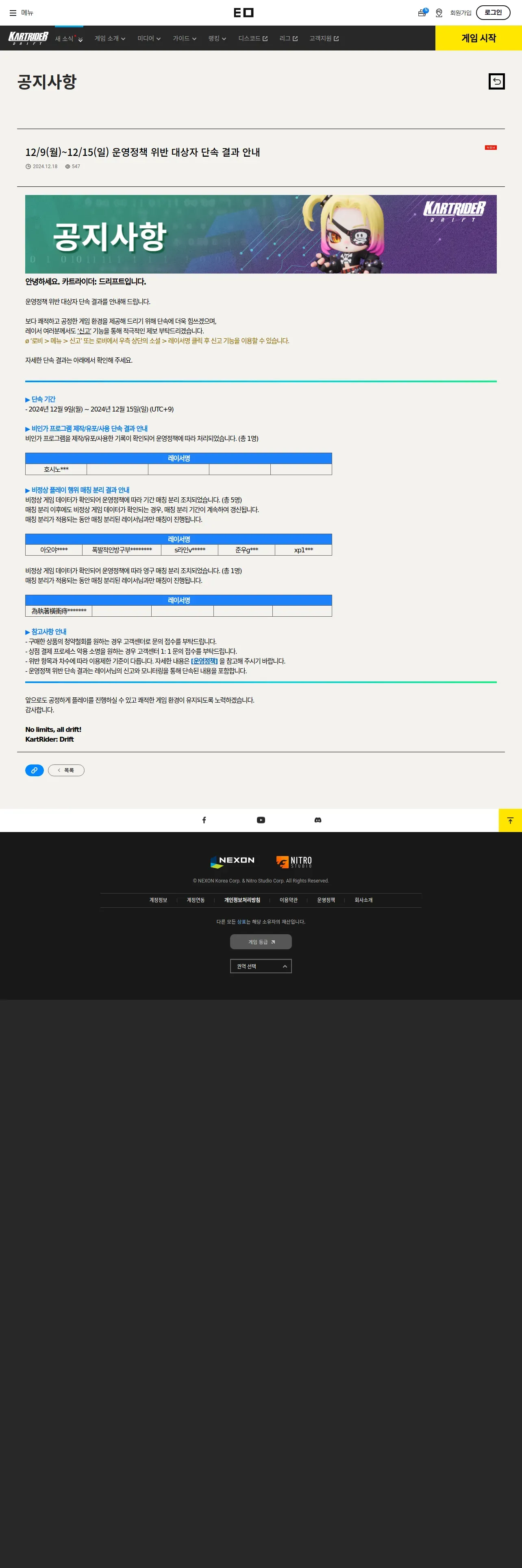 https://kartdrift.nexon.com:443/kartdrift/ko/news/announcement/view?threadId=2701862
