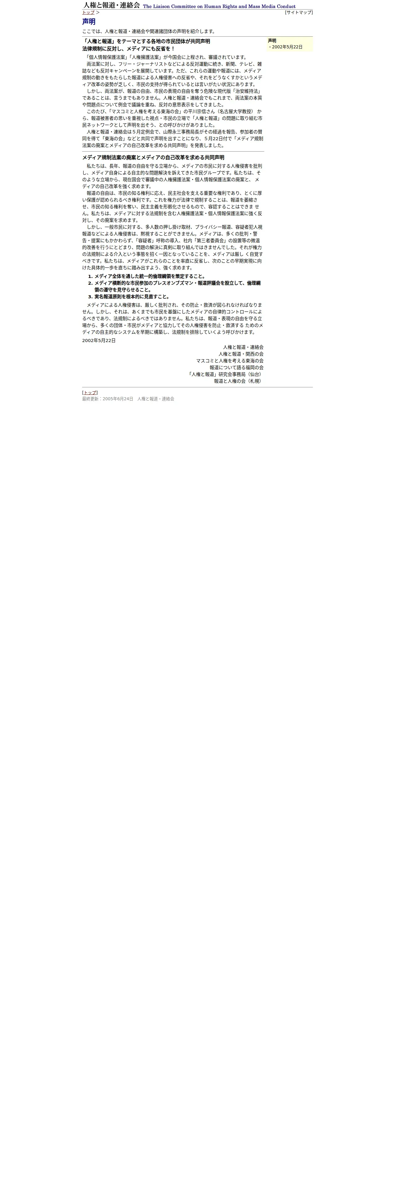 取得元URL: https://www.jca.apc.org:443/~jimporen/statement.html