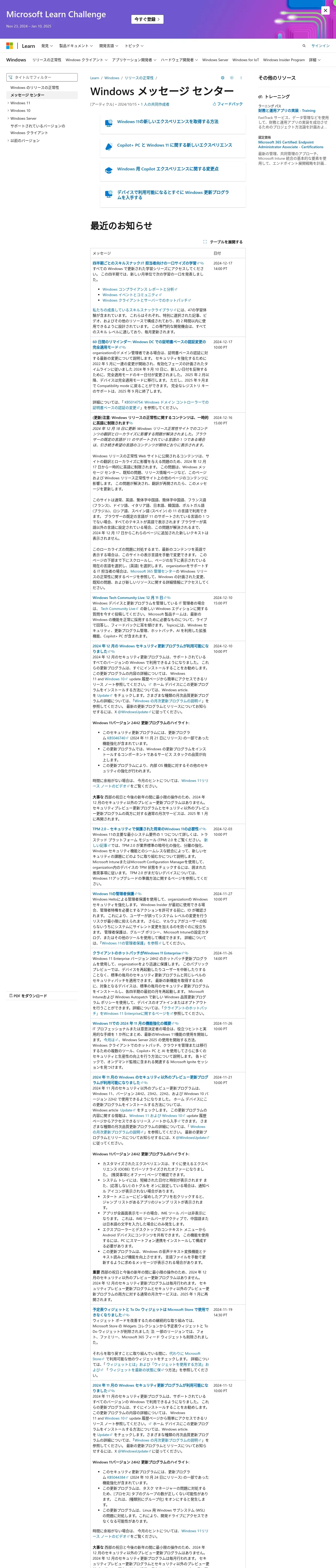 取得元URL: https://learn.microsoft.com:443/ja-jp/windows/release-health/windows-message-center