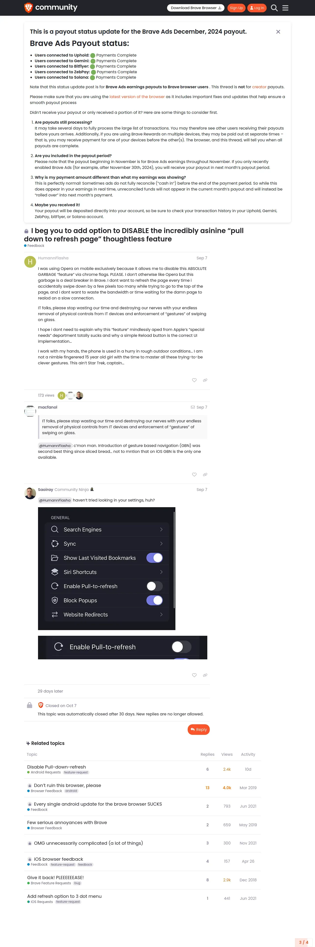 https://community.brave.com:443/t/i-beg-you-to-add-option-to-disable-the-incredibly-asinine-pull-down-to-refresh-page-thoughtless-feature/567228