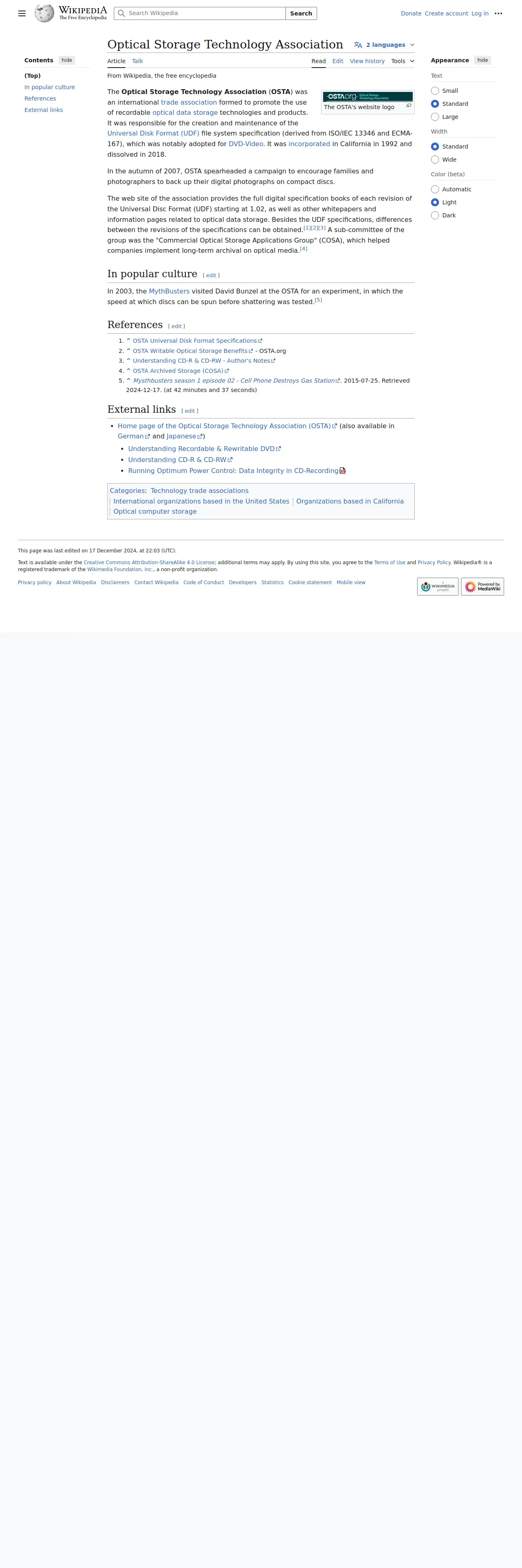 https://en.wikipedia.org:443/wiki/Optical_Storage_Technology_Association