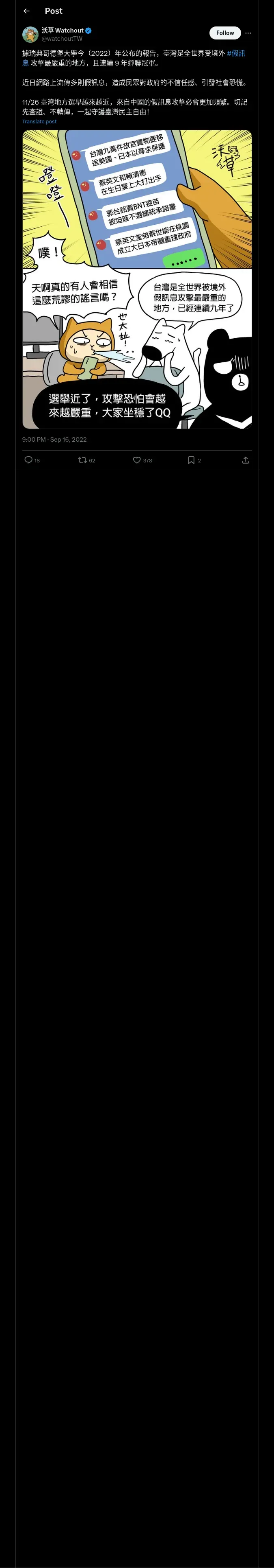 取得元URL: https://x.com:443/watchoutTW/status/1570744330725126144