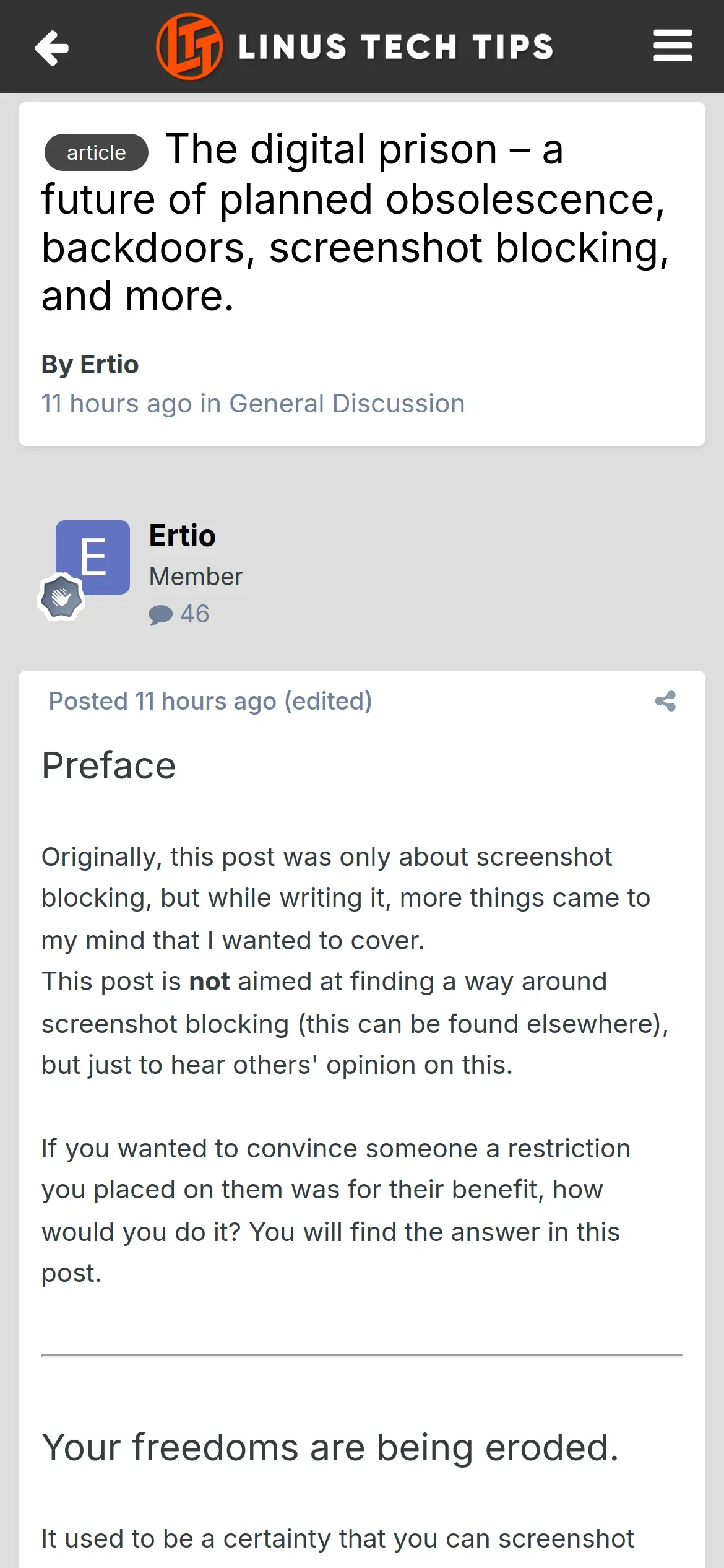 https://linustechtips.com:443/topic/1593356-the-digital-prison-%E2%80%93-a-future-of-planned-obsolescence-backdoors-screenshot-blocking-and-more/