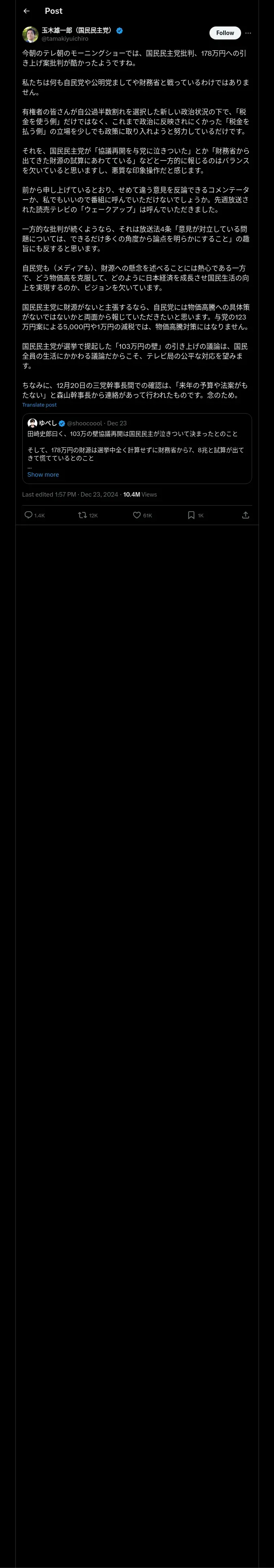 取得元URL: https://x.com:443/tamakiyuichiro/status/1871057484041072980