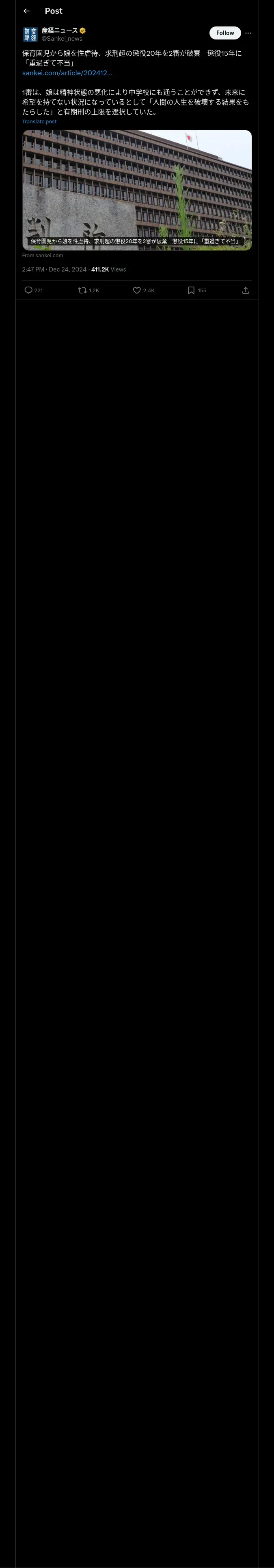 取得元URL: https://x.com:443/Sankei_news/status/1871432576726130852
