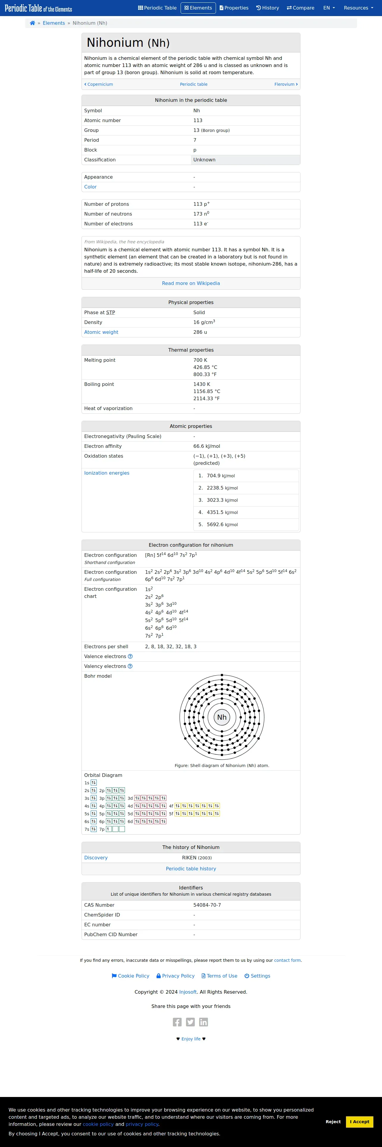 取得元URL: https://www.periodictable.one:443/element/113