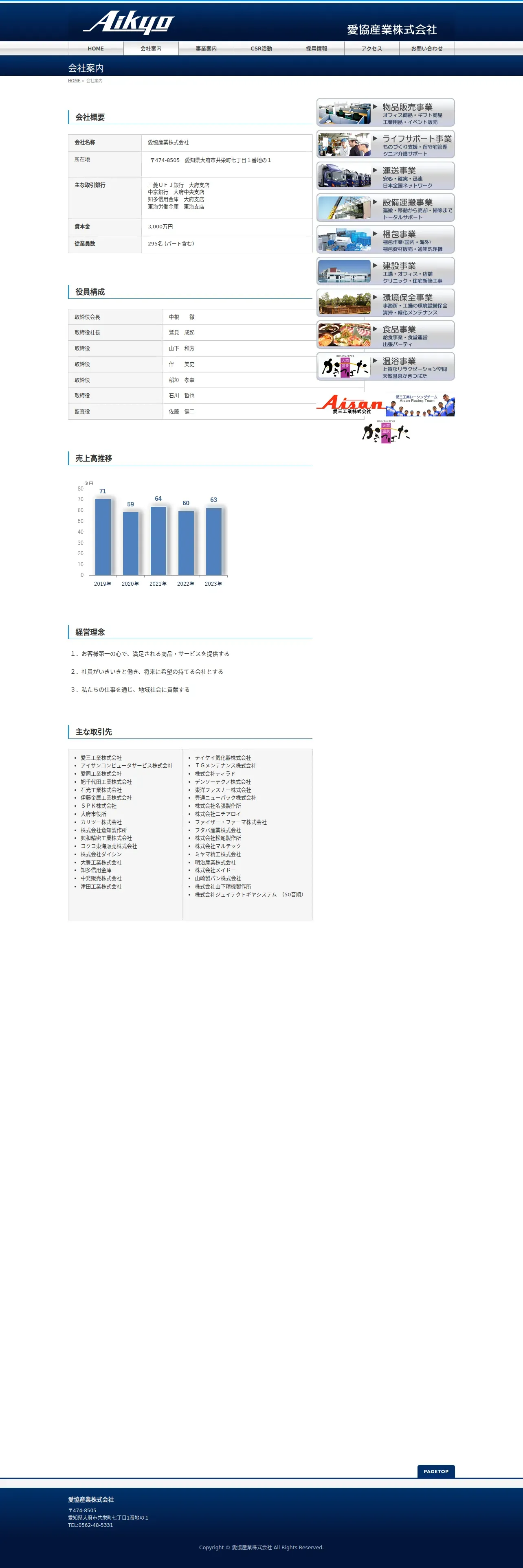 https://aikyosangyo.co.jp:443/%e4%bc%9a%e7%a4%be%e6%a6%82%e8%a6%81/
