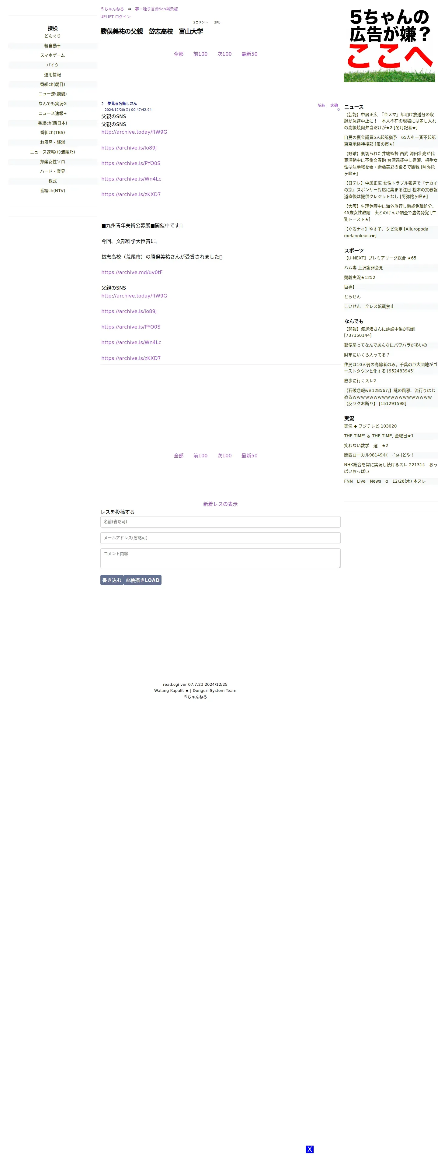 取得元URL: https://medaka.5ch.net:443/test/read.cgi/yume/1734623236/2-n