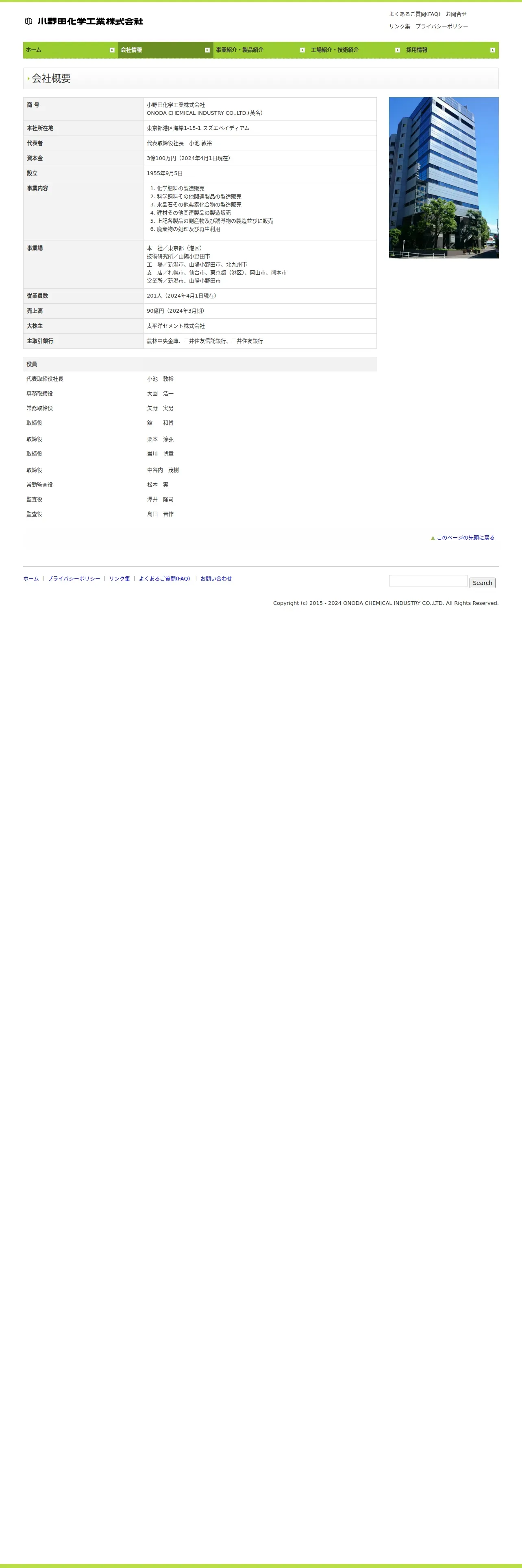 https://www.onoda-kagaku.co.jp:443/profile