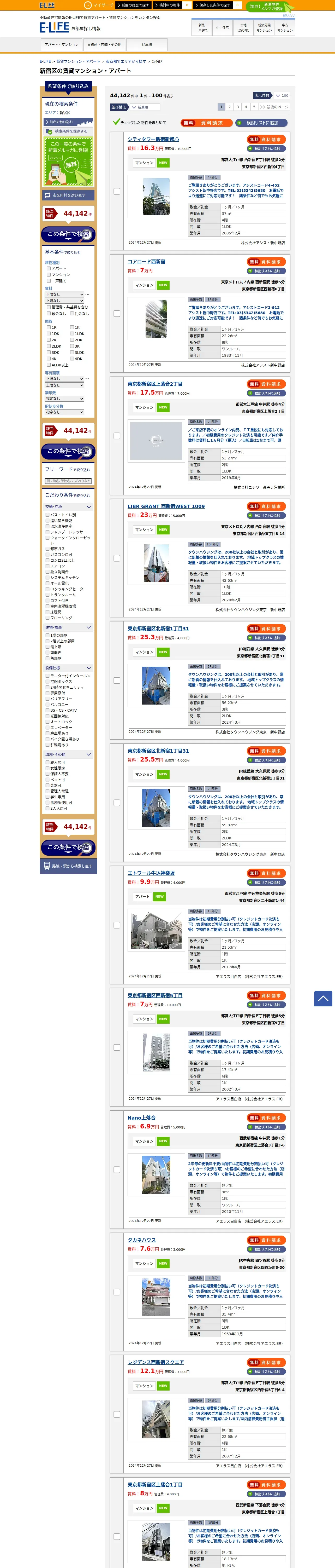 https://www.e-life.jp:443/chintai/apartment/area/tokyo/shinjukuku/1/