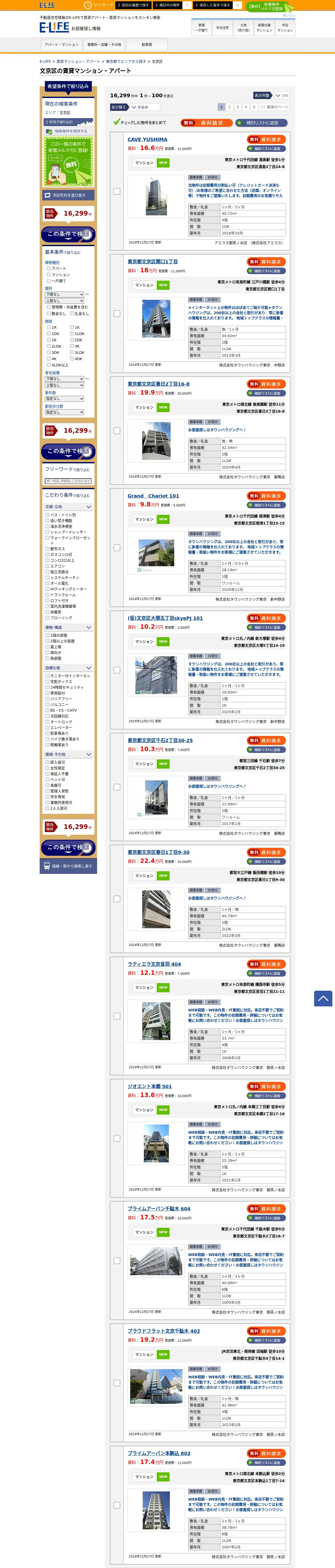 https://www.e-life.jp:443/chintai/apartment/area/tokyo/bunkyoku/1/