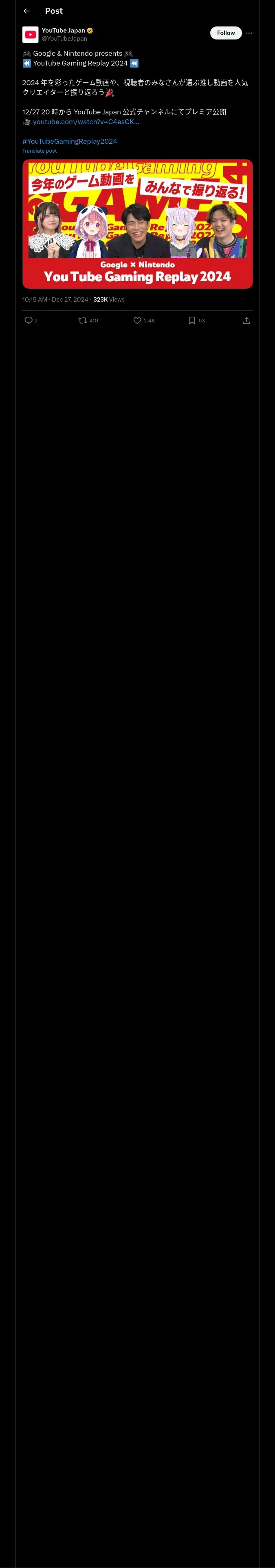 取得元URL: https://x.com:443/YouTubeJapan/status/1872451083609457111